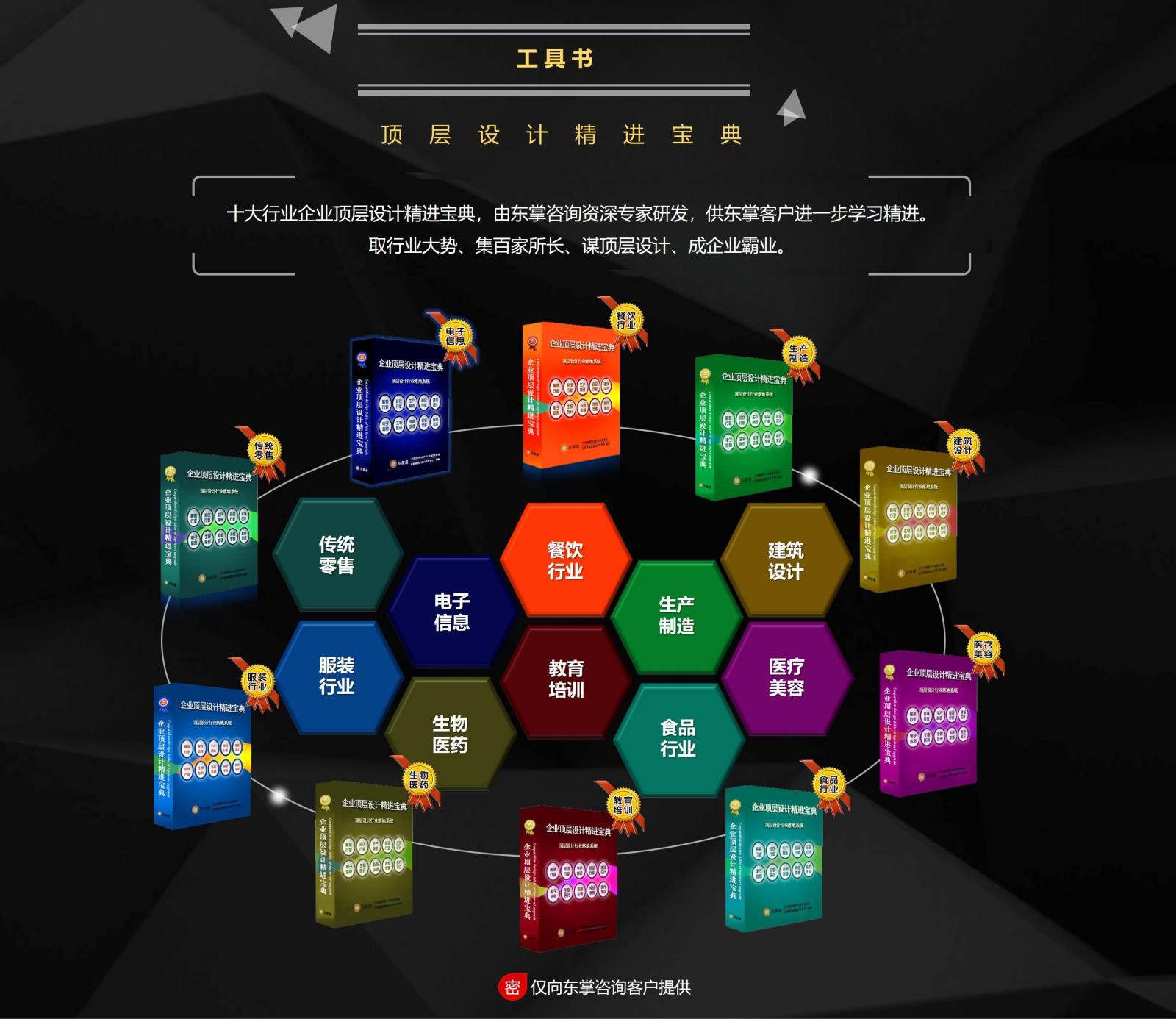 东掌咨询核心顾问团队来源于知名战略咨询公司和股权激励咨询机构,深耕股权激励咨询培训多年,精通股权激励课程学习,具有丰富的股权激励设计咨询与咨询落地经验。在总结数百家企业股权设计咨询案例的基础上,东掌咨询研发了十大行业《企业顶层设计与股权激励整体解决方案》,内容包括:1)《股权价值定位》;2)《企业顶层设计》;3)《股权架构设计》;4)《股权方案框架设计》;5)《员工股权激励方案设计》;6)《外部股权合作方案设计》;7)《合伙人股权分配方案设计》;8)《股权方案配套制度》;9)《股权方案实施流程》;10)《股权管理办法》等。